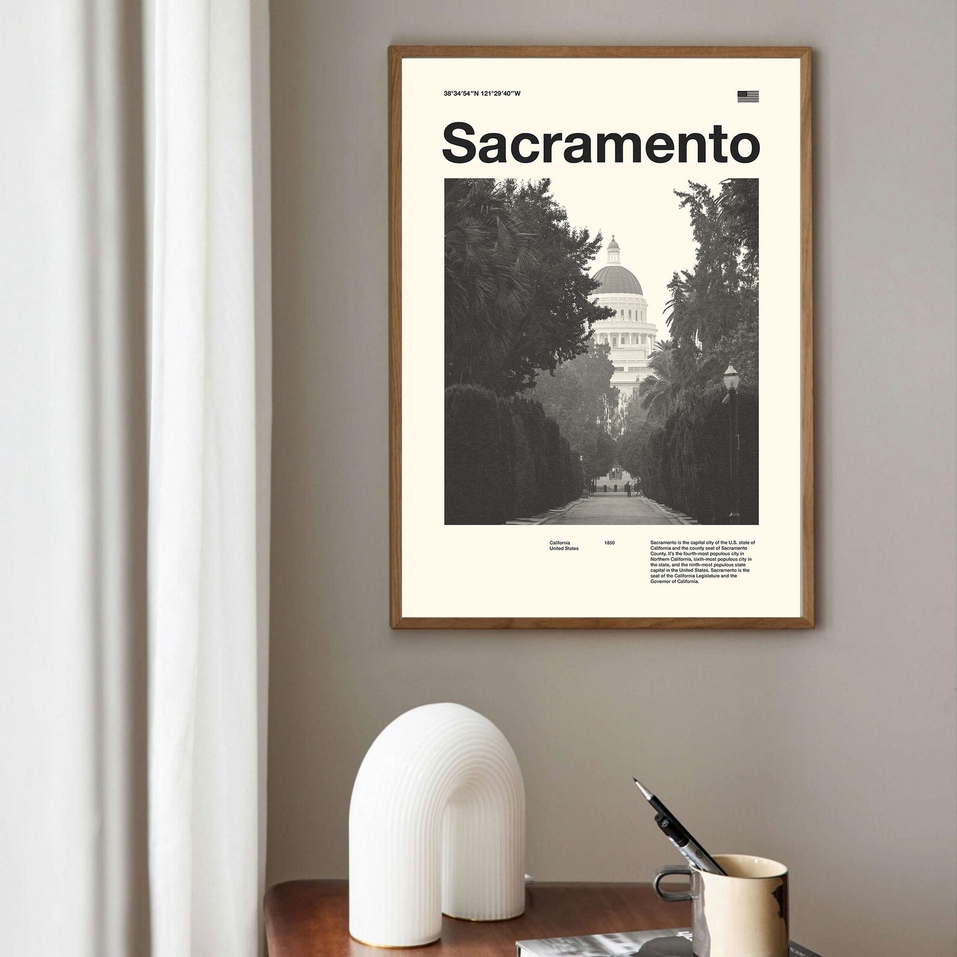 Sacramento City Art Print | Sacramento Poster | Sacramento Wall Art | Mid Century Poster | Travel Print Art | California